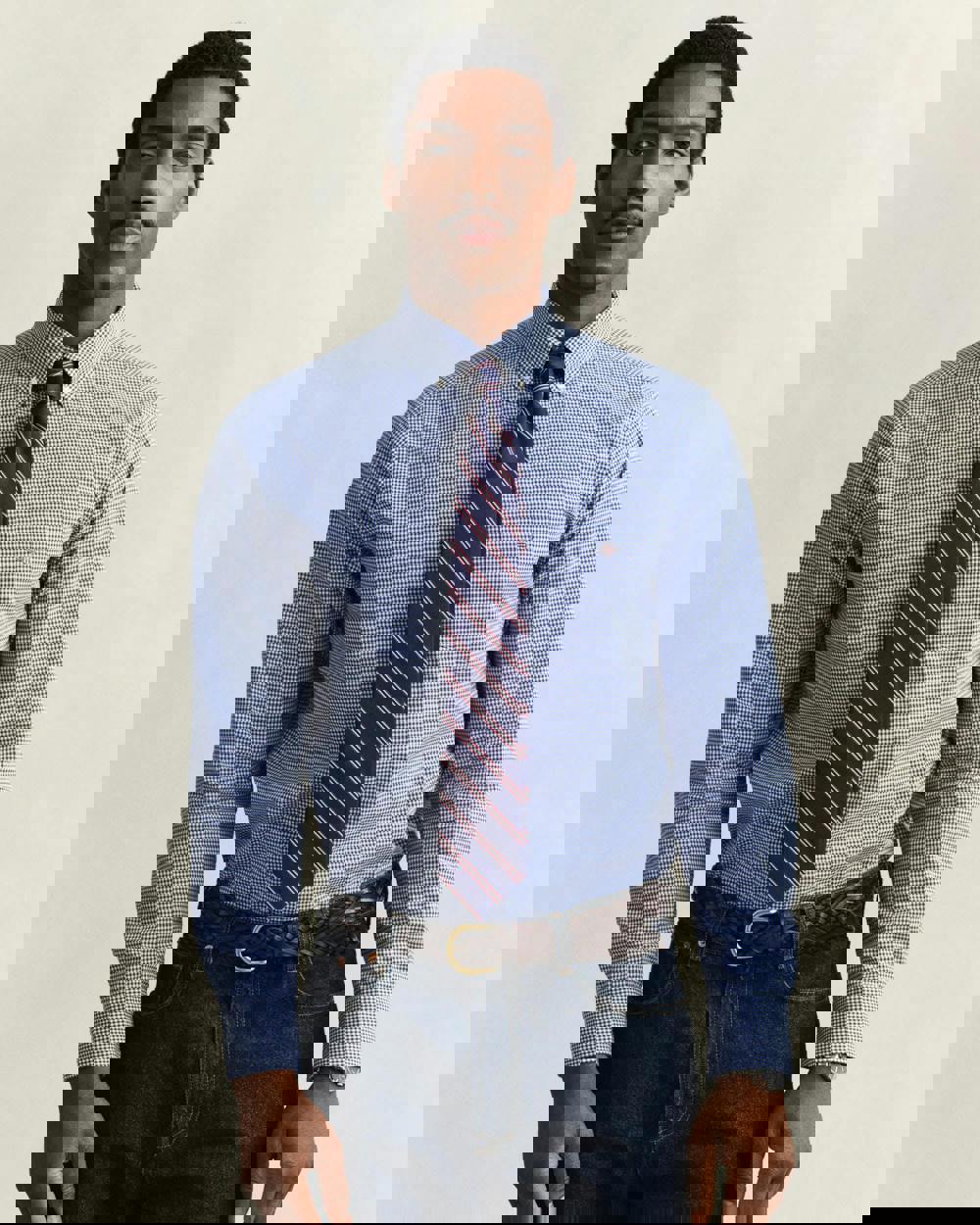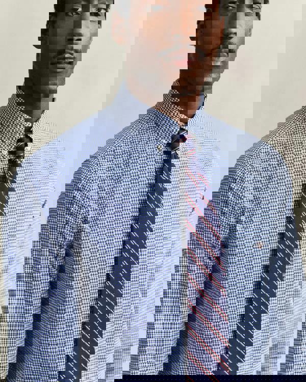 This Gant shirt is made from durable cotton poplin and garment-washed for a softer feel. Designed with a yarn-dyed gingham check, it’s cut for a regular fit and features a button-down collar, curved hem, and a box pleat with the brand’s signature locker loop at the back. A chest pocket is embroidered with a Gant shield graphic inspired by the 1980s.