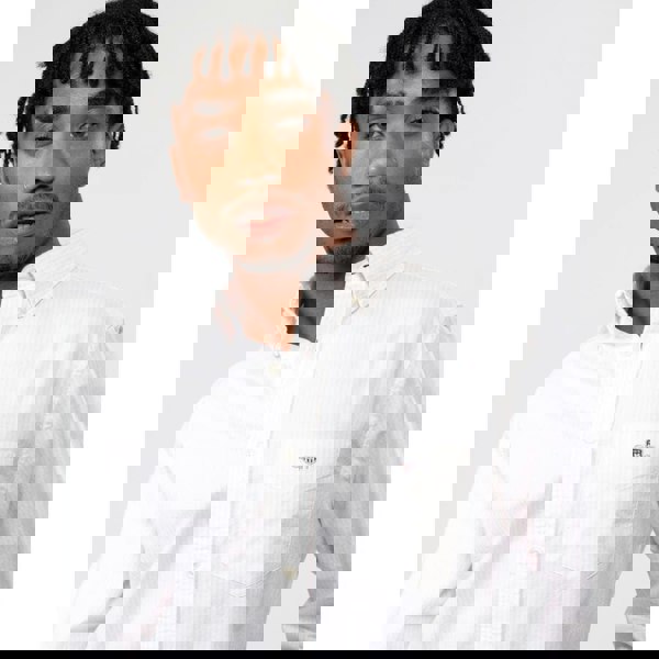 Featuring an 80s archive-inspired shield graphic with retro appeal, this Oxford shirt features a regular fit and a classic banker stripe throughout the garment. Detailed with a button-down collar and a curved hem, this shirt is a preppy essential for any business-casual wardrobe.