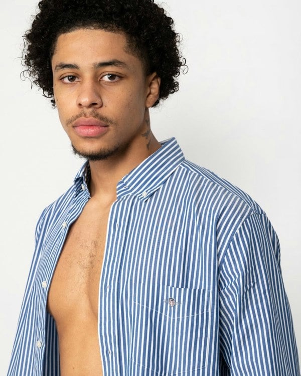 GANT Mens Regular Fit Long Sleeve Poplin Stripe Shirt in 436 College Blue