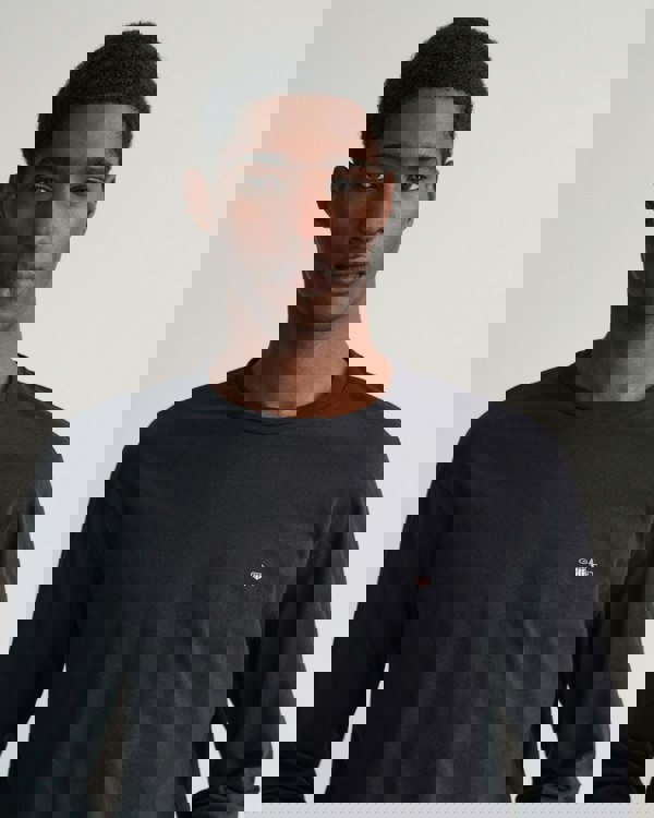 GANT Mens Regular Fit Long Sleeve Shield Logo T-Shirt in 5 Black
