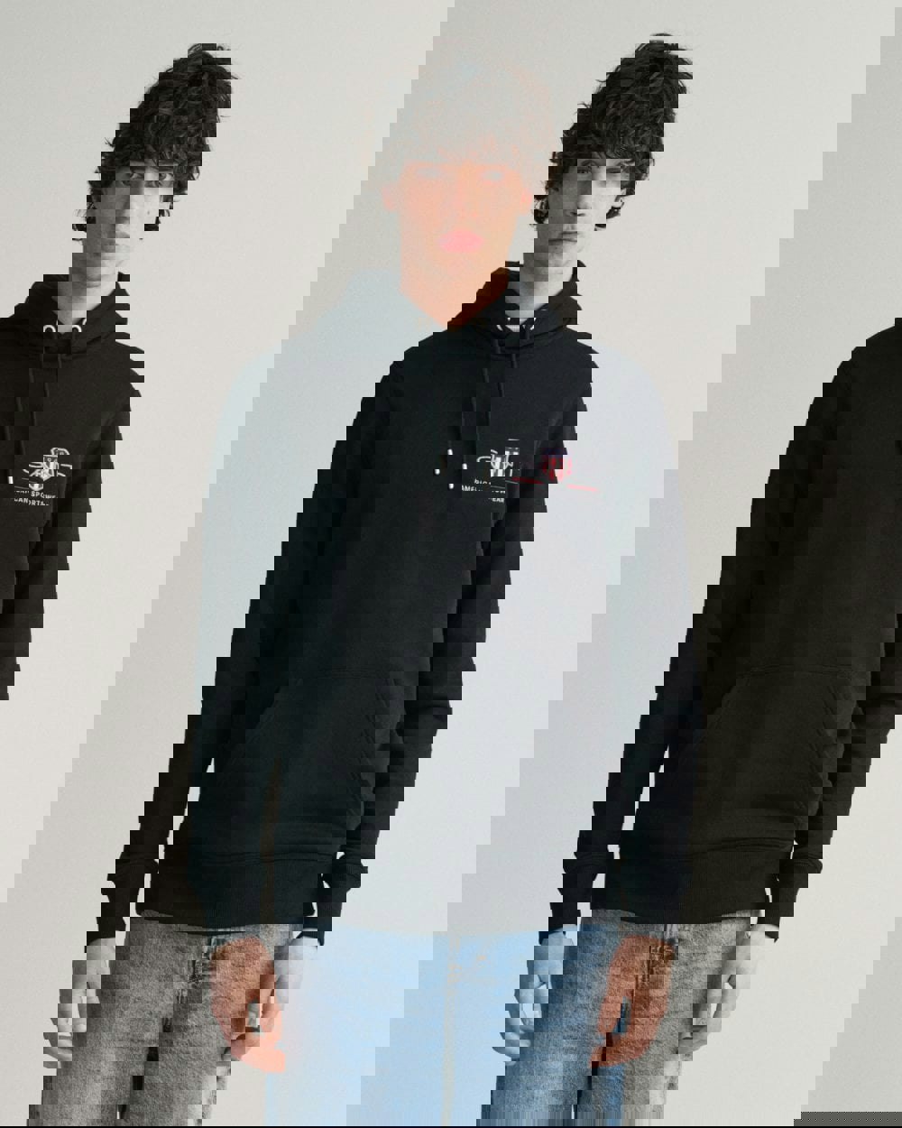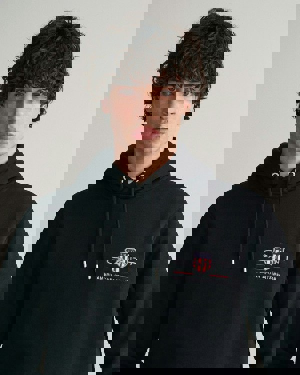 GANT Mens Regular Fit Medium Archive Shield Pullover Hoodie in 5 Black
