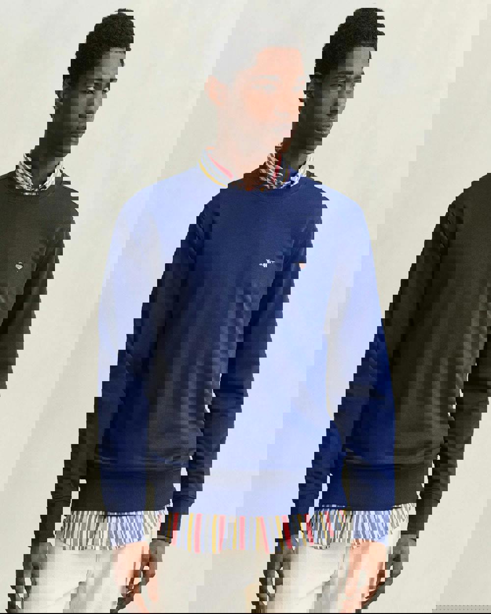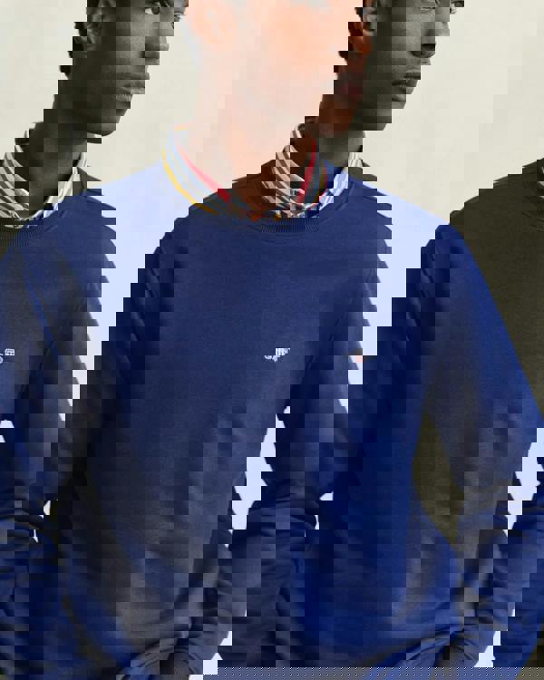 This regular-fit sweatshirt is made from a soft cotton-polyester blend. It features a classic crew neck, ribbed cuffs and hem, and a small embroidered shield graphic at the chest for a subtle signature detail.