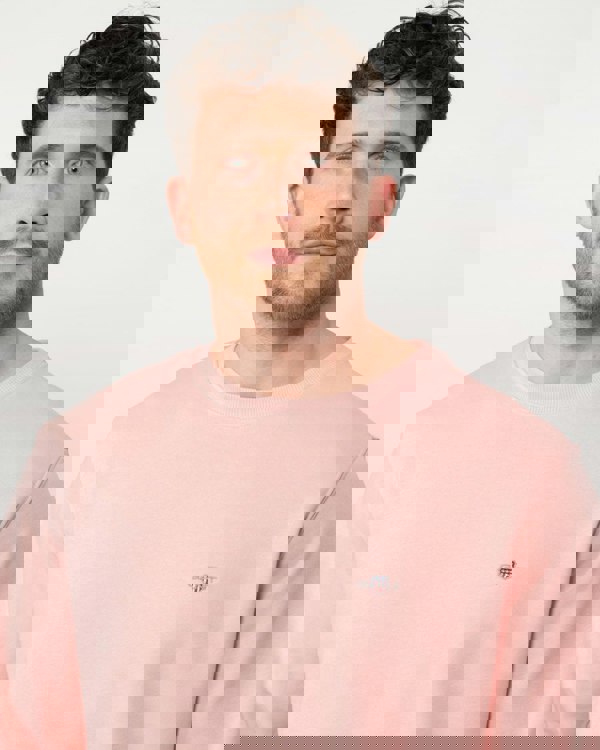 GANT Mens Regular Fit Shield Logo Crew Neck Sweatshirt in 671 Bubblegum Pink