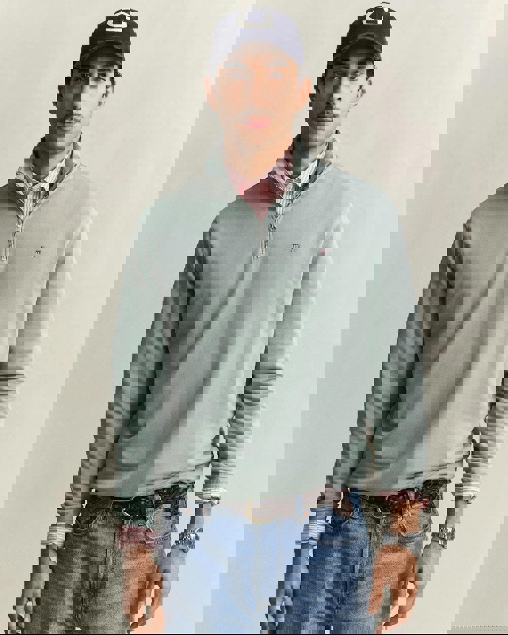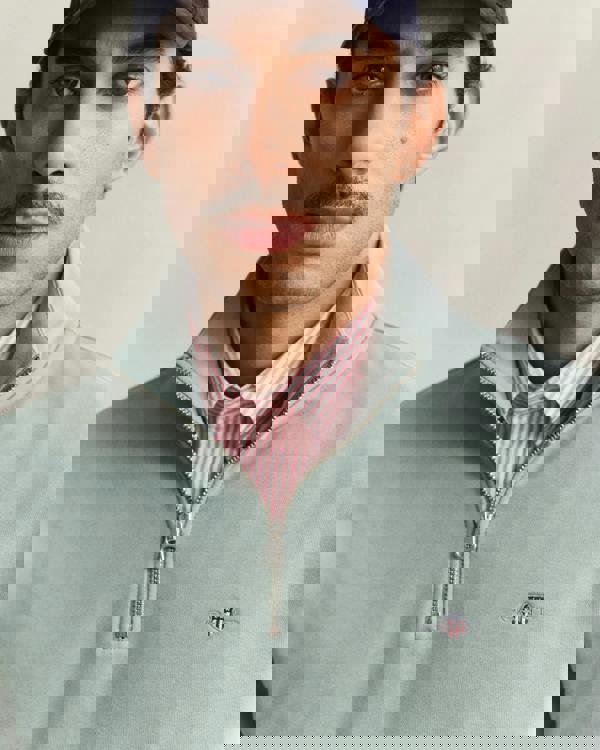 This regular-fit sweatshirt is crafted from a soft cotton-polyester blend. It features a half-zip collar, ribbed cuffs and hem, and a small embroidered shield graphic at the chest for a refined finish.