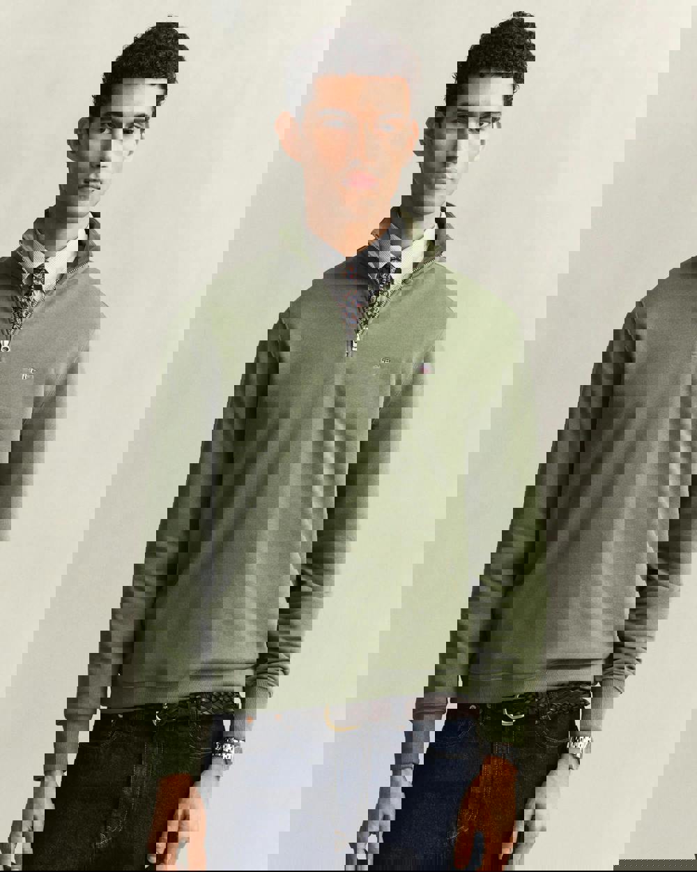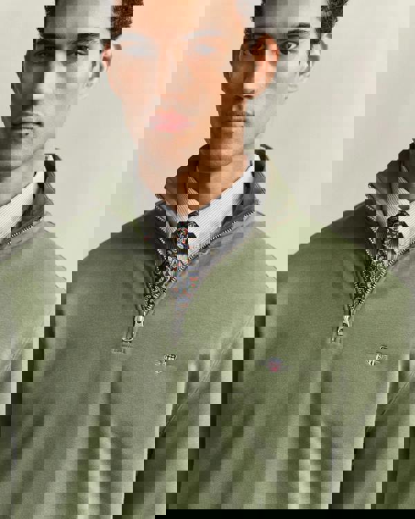 This regular-fit sweatshirt is crafted from a soft cotton-polyester blend. It features a half-zip collar, ribbed cuffs and hem, and a small embroidered shield graphic at the chest for a refined finish.