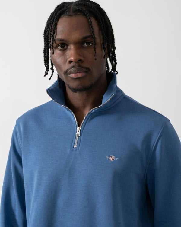 GANT Mens Regular Fit Shield Logo Half Zip Sweatshirt in 442 Vintage Blue