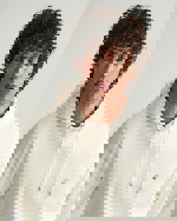 GANT Mens Regular Fit Shield Logo Pullover Hoodie in 113 Eggshell