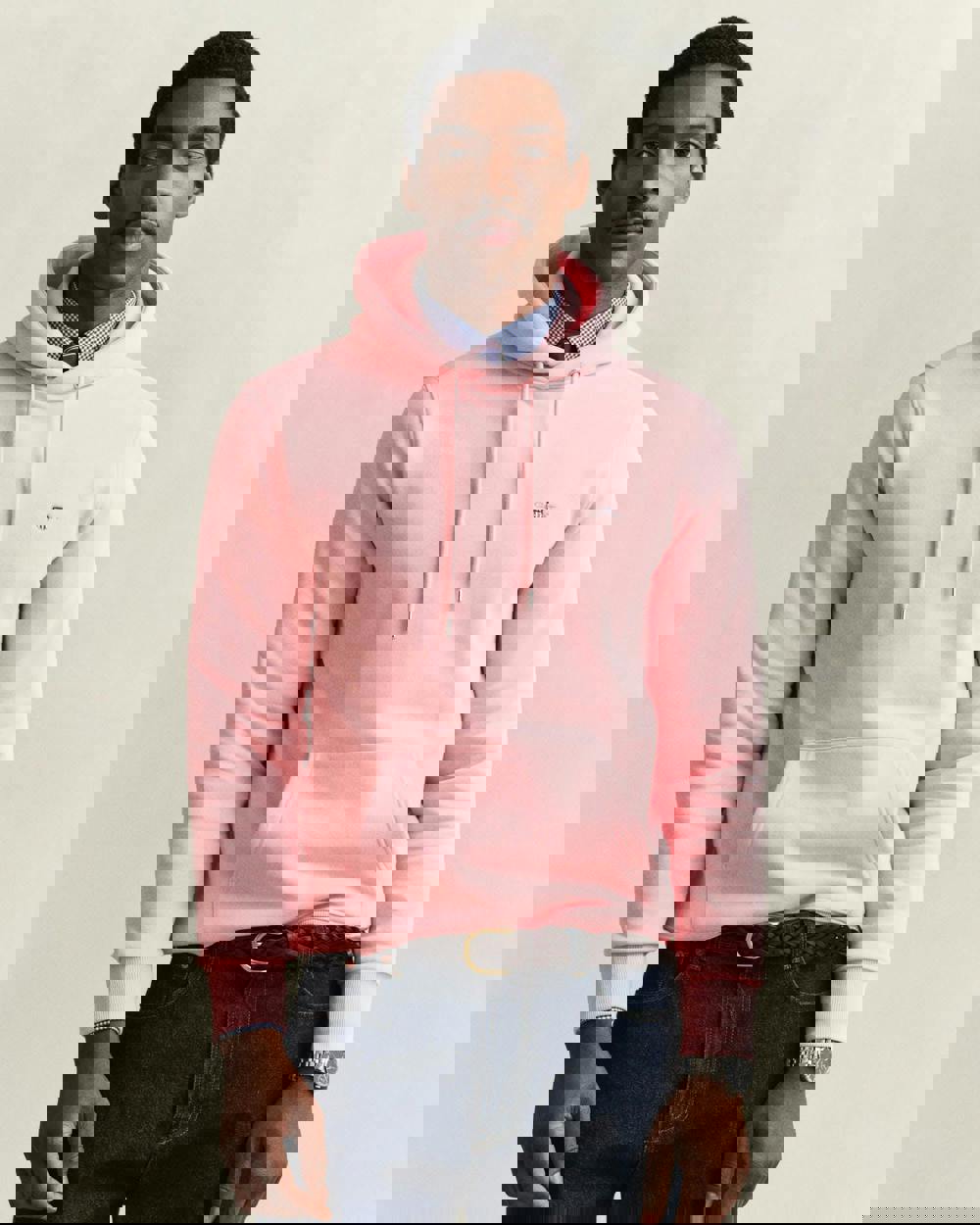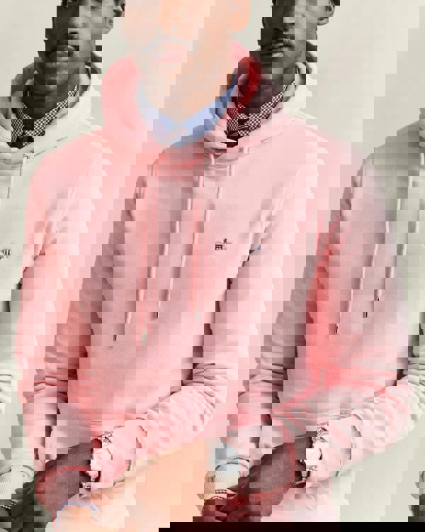 This regular-fit hoodie is crafted from a soft cotton-polyester blend. It features a hood, kangaroo pocket, silver-tone drawstring eyelets, and a small embroidered shield graphic at the chest for a subtle signature touch.