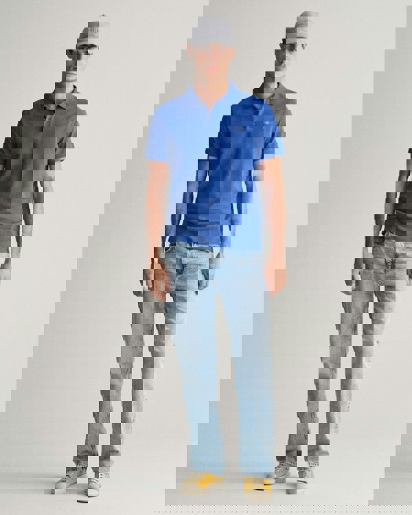 GANT Mens Regular Fit Short Sleeve Shield Logo Pique Polo in 407 Rich Blue
