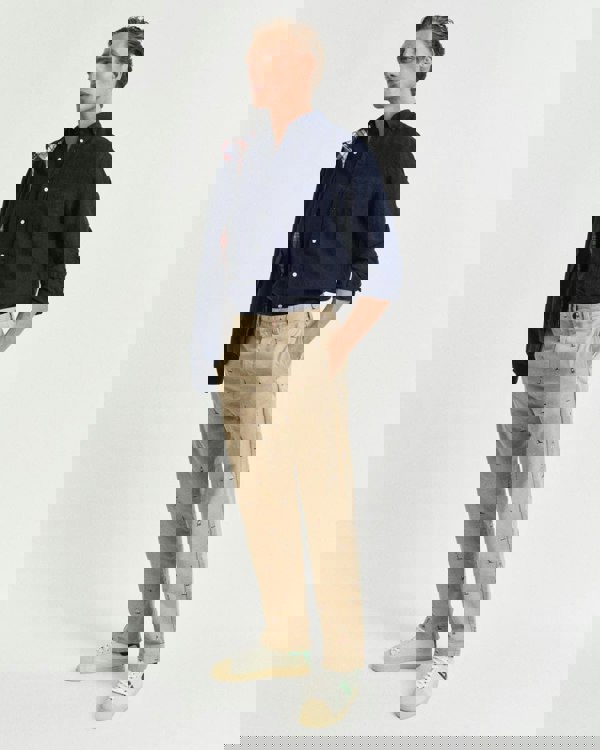 Upgrade your summer style with this regular-fit shirt crafted from 100% linen, renowned for its natural breathability and lightweight texture. Its crisp appearance makes it a perfect choice for smart-casual summer gatherings. This shirt is designed to be worn untucked, embracing a more relaxed look, and it has been garment-dyed to achieve a rich hue and an authentic lived-in appearance. It boasts a button-down collar, a curved hem, a chest pocket featuring GANT logo embroidery, and a convenient box pleat paired with a locker loop at the back.
