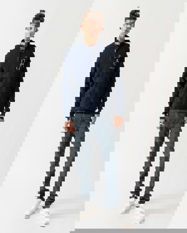 This sweater from GANT is a simple and cozy statement. It is designed from a mid-weight cotton in a regular fit. It has a sporty half-zip collar, rib endings, and a small-scale G badge applied at the chest in a terry and felt material.