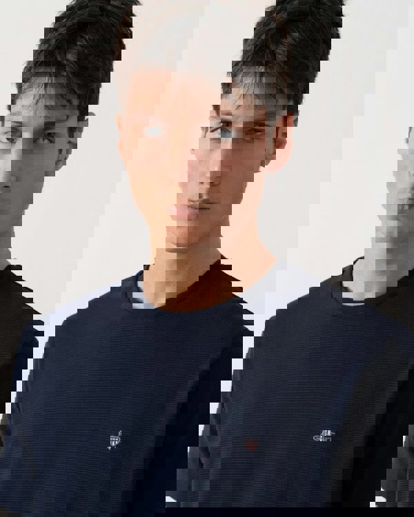Discover designer men's logo t-shirts with GANT's Men's Texture Short Sleeve T-Shirt in 433 Evening Blue