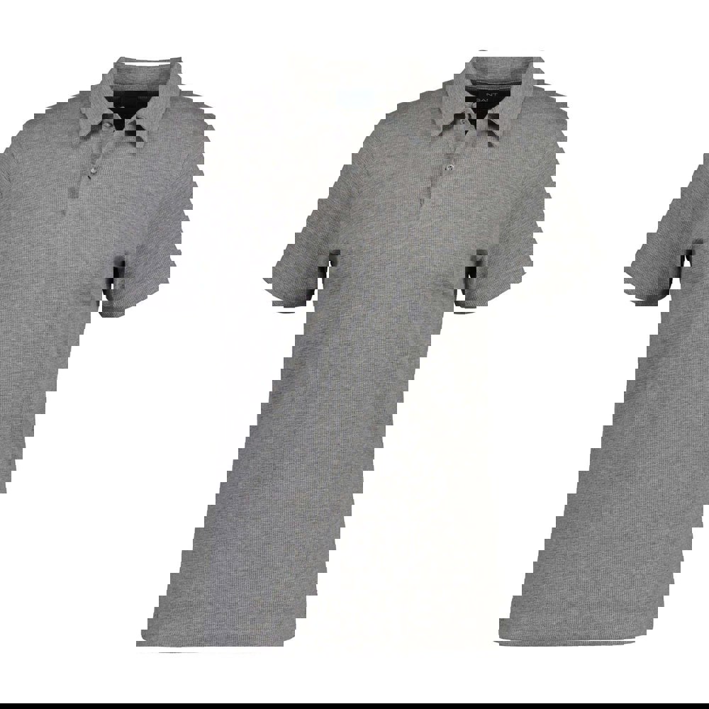 This men’s polo shirt is made from 97% organic cotton and 3% elastane, with a soft-touch textured waffle piqué fabric. It has a collared neckline and short sleeves, finished with an embroidered logo for a clean, branded detail.