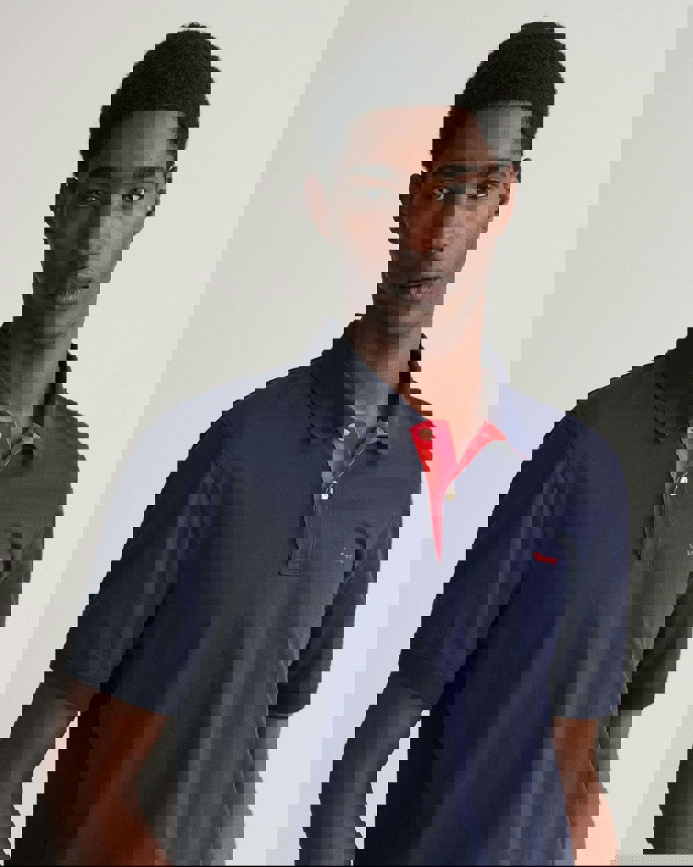 GANT Regular Fit Short Sleeve Contrast Pique Rugger in 433 Evening Blue