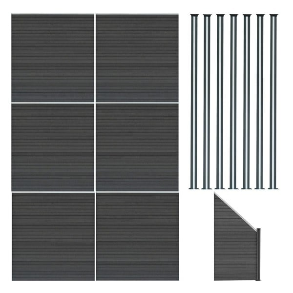 Composite Fence Panel x 6 & LED Posts x 7 - Grey