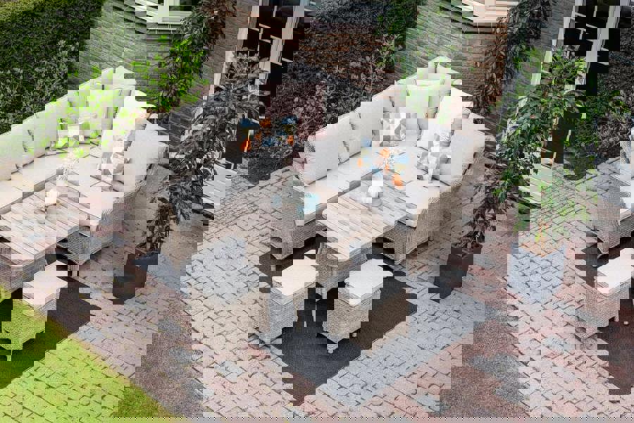 Expertly crafted by Garden Impressions, this corner sofa seamlessly merges classic design with contemporary functionality, creating an inviting focal point for any outdoor setting. The accompanying height-adjustable composite table transitions effortlessly between coffee and dining configurations, accommodating various entertaining scenarios whilst requiring minimal upkeep.