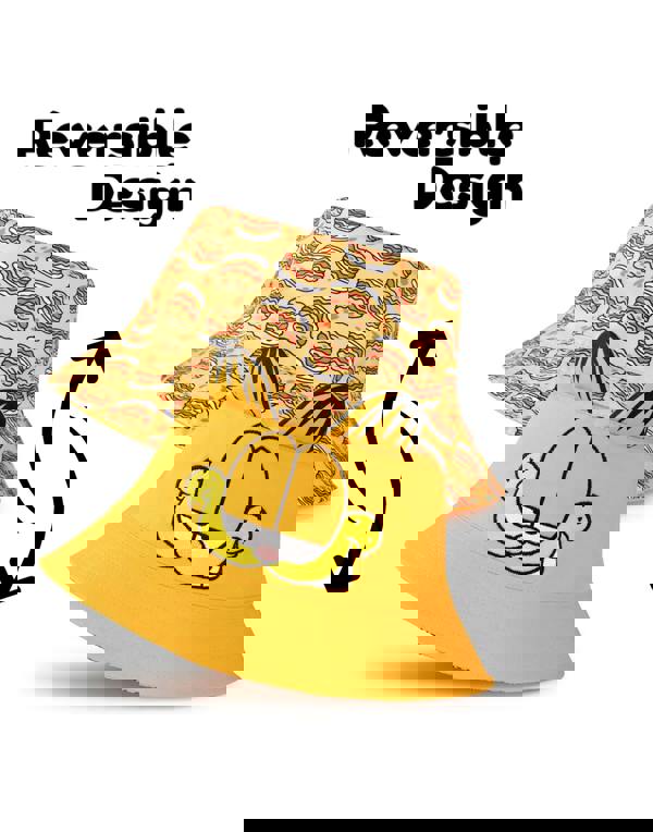 Introducing the Garfield Unisex Orange Reversible Bucket Hat, a must-have accessory for fans of the classic cartoon