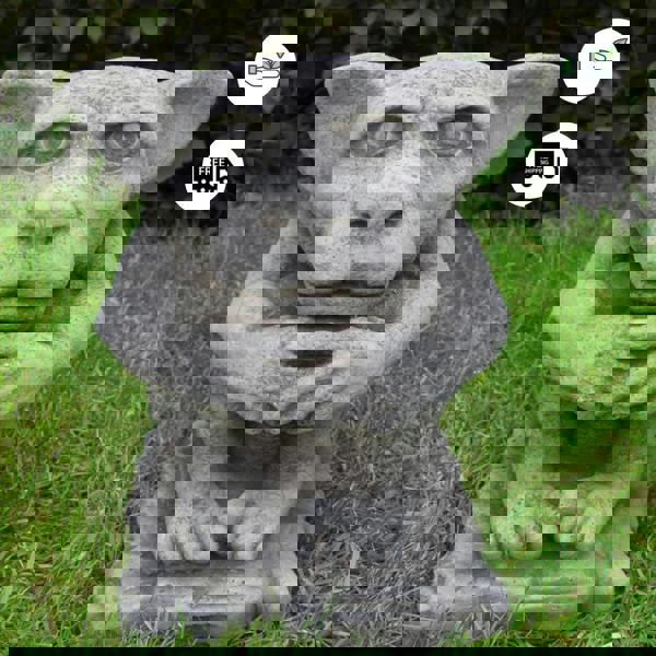 Stunning garden ornament of a gargoyle with big ears would make a perfect size for the surrounding wall or gateposts. A lovable character who will add charm to any garden! Can be used outside in the garden or in the house. Extremely cute and charming - would look perfect in any garden or house! Suitable for indoor or outdoor use. Solid & heavy - just how quality garden statues should be!