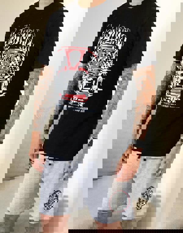 Introducing the Gas Monkey Garage Mens Black Short Sleeve Pyjama Set, a practical choice for loungewear and sleeping