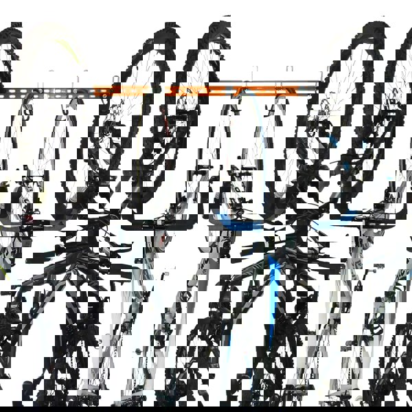 This wall mounted bike rack is designed for 4 road bikes or a mixture of road and mountain bikes.