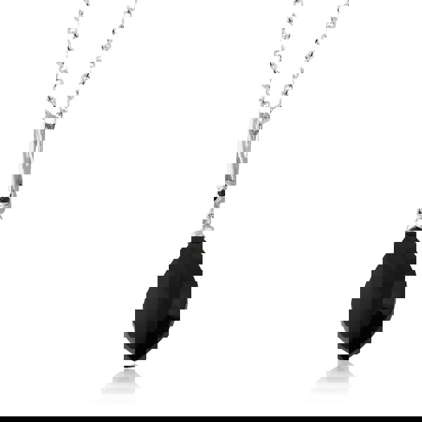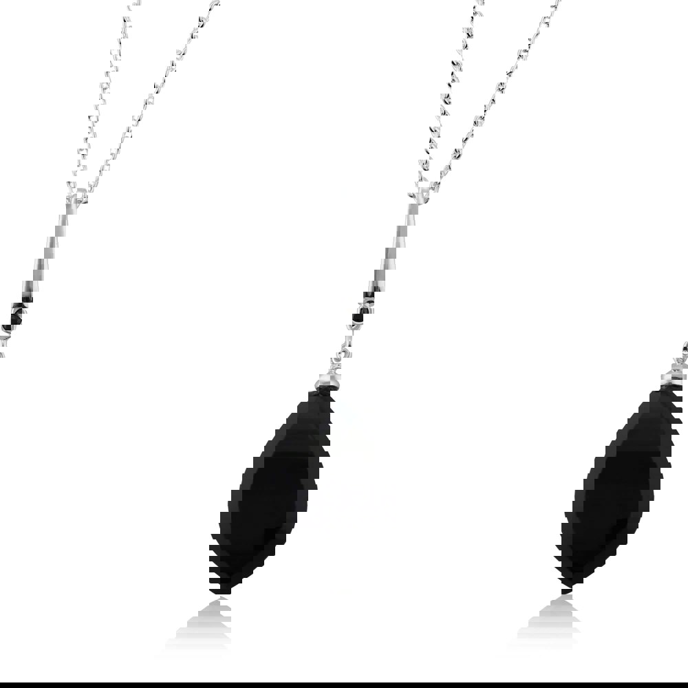 Gemondo's Art Deco collection brings you wonderfully embellished Great Gatsby-esque designs inspired by the roaring 1920's. This stunning art deco inspired necklace crafted from sterling silver features a large pear shaped black onyx cabochon offset with a round cut faceted black spinel gemstone.