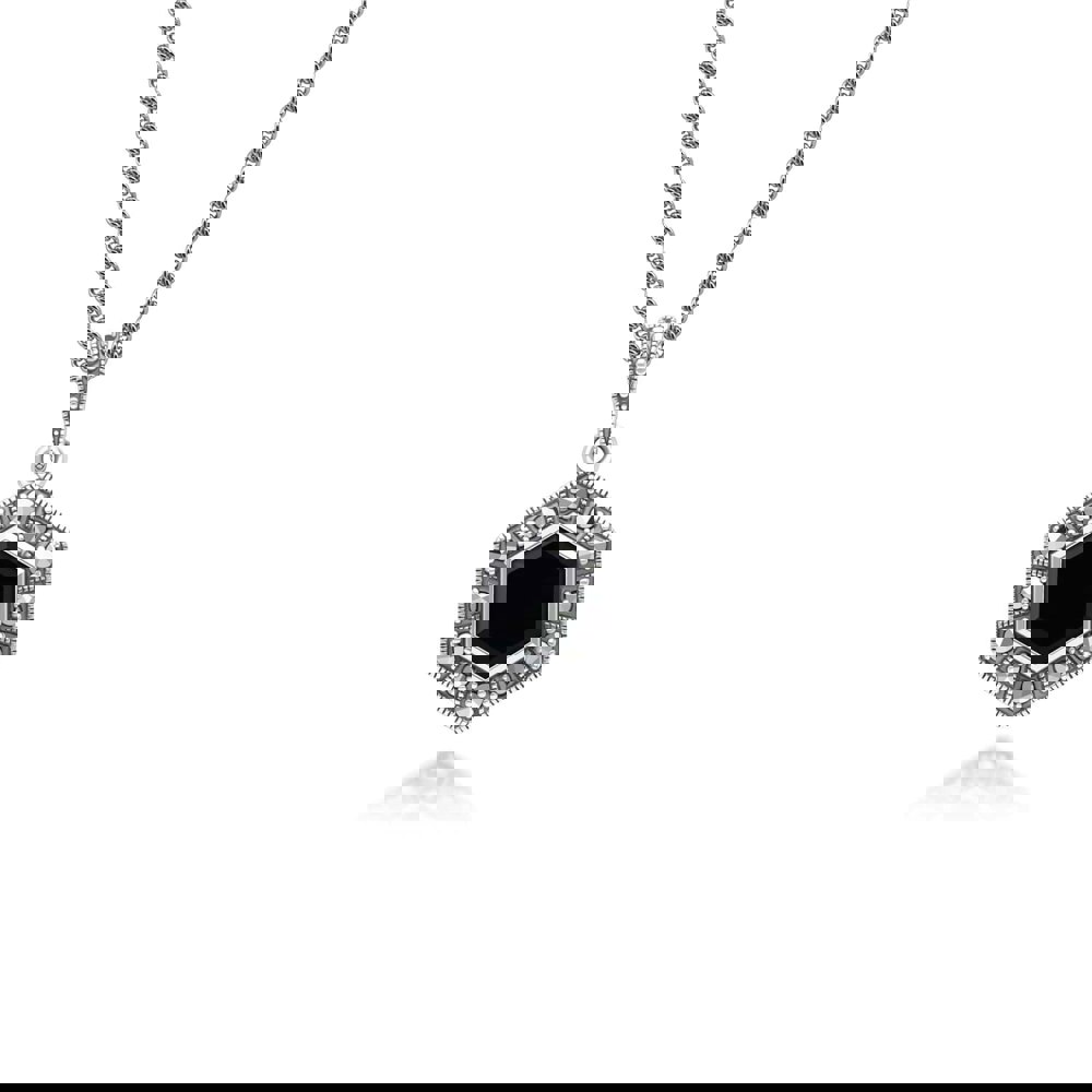 A Stunning Art Deco Style Sterling Silver Pendant Necklace with a Hexagon Black Onyx and sparkling Marcasite.