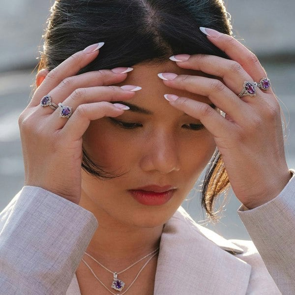 Amethyst gemstones flaunt vibrant purple colours of rich berries and wine. It has been said that St Valentine affectionately wore an amethyst ring which in turn became a symbol of love. Amethyst is the birthstone for February and may be given as a 6th anniversary gift. Marcasite jewellery is a nod to vintage elegance and quiet strength. Admired since the Victorian era, its metallic shimmer adds a touch of timeless charm. Thought to promote clarity and creativity, marcasite is perfect for those who value subtle sophistication.