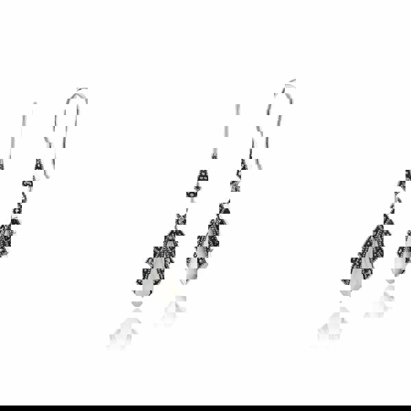 Crafted from sterling silver, these Art Deco inspired drop earrings feature mother of pearl on each earring and are decorated with a fan of sparkling marcasite gemstones.