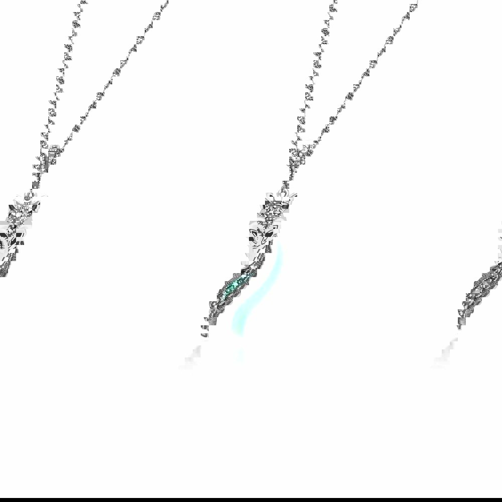 A timeless glamour Art Nouveau Style Marcasite, Green and Black Enamel Fox Pendant and Necklace crafted in gold plated sterling silver.