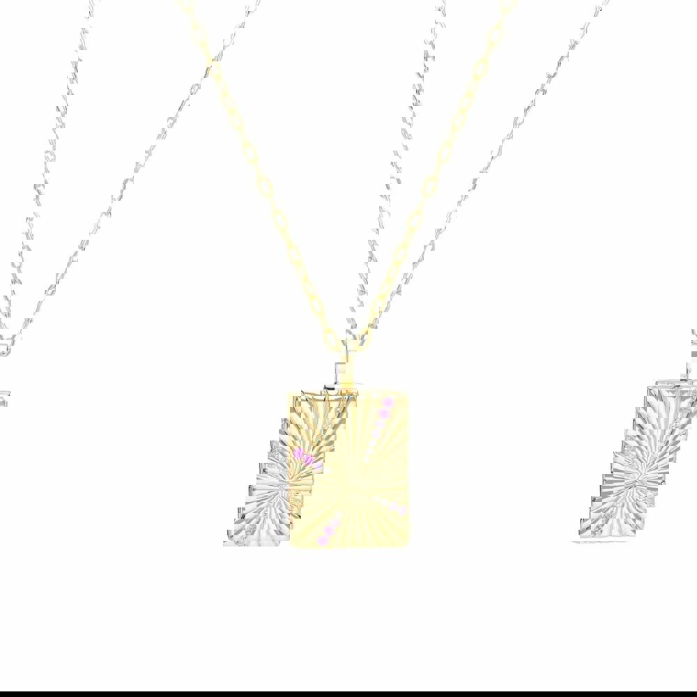 A gorgeous 20mm rectangle locket hinged to open like your own little book of memories. Dusted with white topaz and pink sapphire stones, this double sided locket necklace is designed to hold your photos or keepsakes inside. Crafted in 18ct gold plated sterling silver with an elegant 45cm paperclip chain, this locket will layer beautifully with your favourite pendants and necklaces.