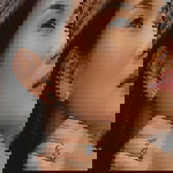 A Striking Pair of Classic Oval Black Moonstone Drop Stud Earrings in 9ct Yellow Gold, featuring mysterious black moonstones with a subtle, enchanting glow and graceful movement, set in warm 9ct yellow gold for a refined expression of modern allure and enduring elegance.