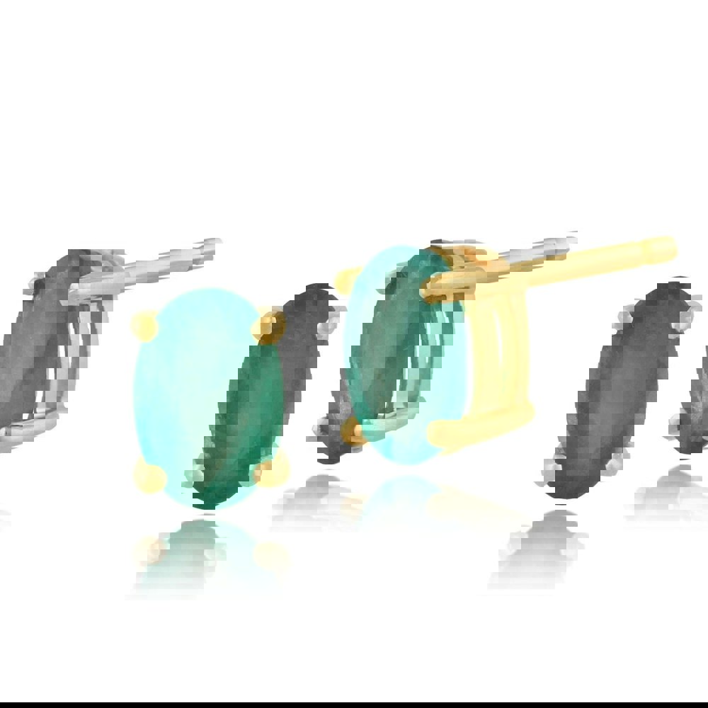 A classic style oval stud earring crafted from 9ct yellow gold with a polished finish. Set with a stunning oval cut faceted emerald gemstone in each stud measuring 6x4mm each. Perfect for everyday wear, but with a big enough show to be worn on nights out as well. The stones are encased in a 4 claw setting for security