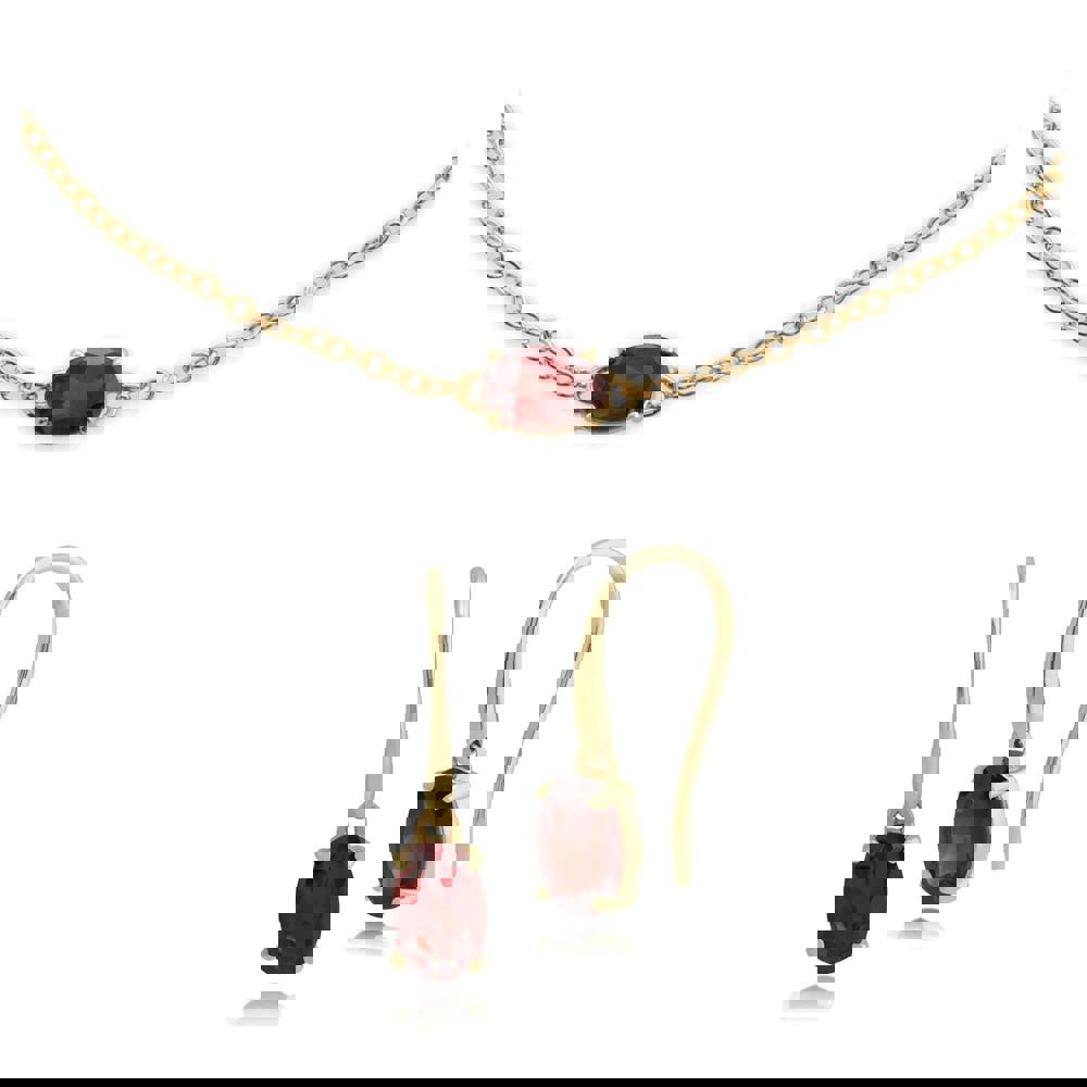 A beautiful drop earring and bracelet set, featuring faceted Mozambique garnet gemstones.