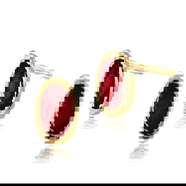 A pair of stunning yellow gold single stone earrings set with an oval cut stunning faceted ruby gemstone