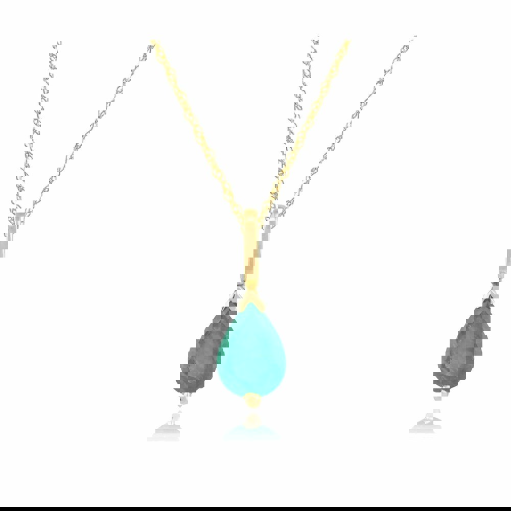 A classic pear shaped single stone pendant crafted from 9ct yellow gold and set with a pear shaped faceted emerald gemstone