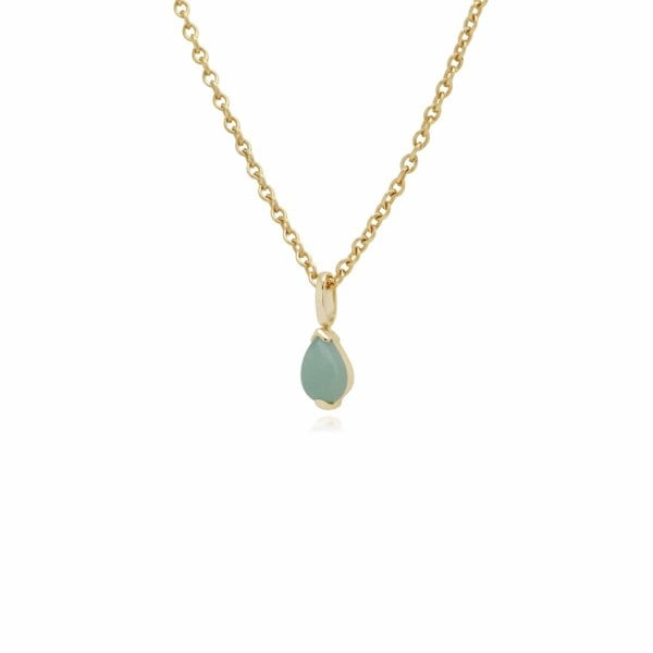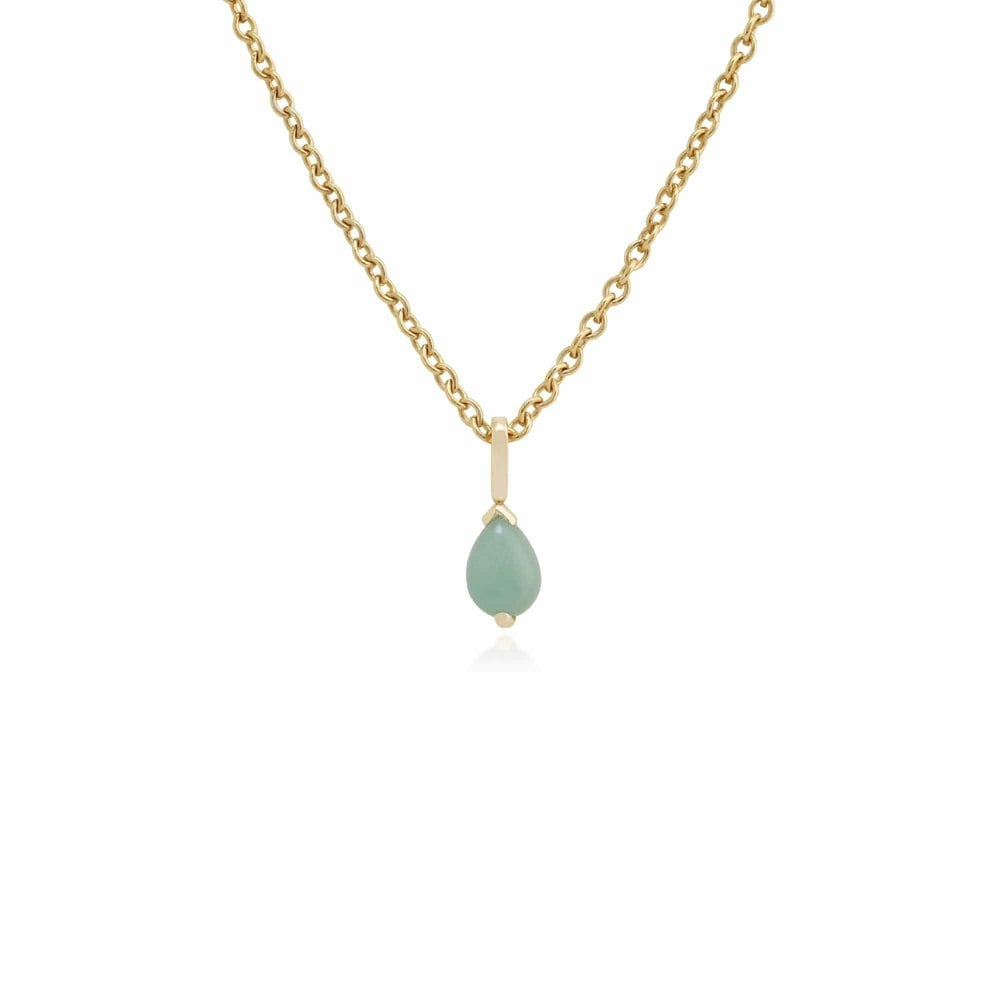 A stunning jade pendant crafted in 9ct yellow gold featuring a pear cut dyed green jadeite gemstone in a three claw setting. This pendant comes with a matching 9ct yellow gold chain.