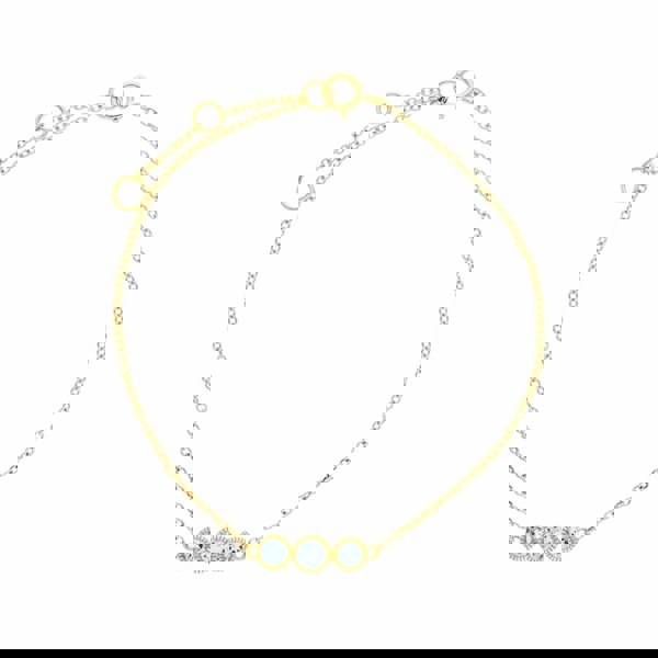 Three round gradient cut aquamarines, set in a Milgrain decorated bezel, set on a gorgeous 9ct yellow chain. Bracelet measures 19cm in length and secures with a bolt ring clasp.