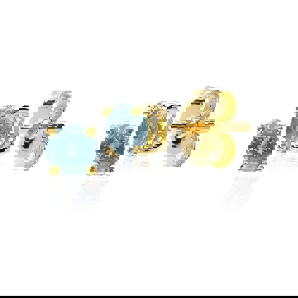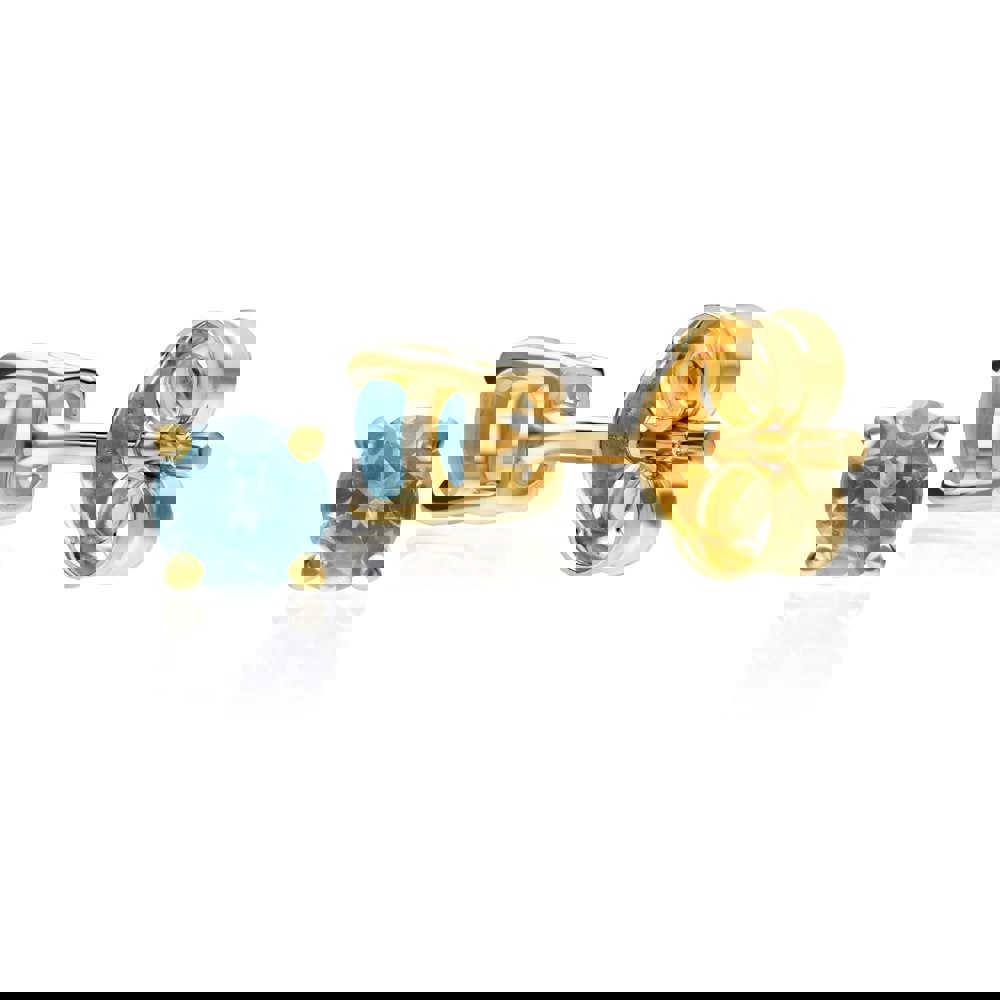 Crafted from 9ct yellow gold, these Classic style studs feature a dazzling round cut light blue topaz held in a claw setting.