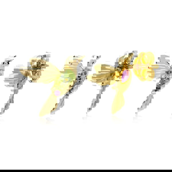This playful pair of 18ct yellow gold plated 925 sterling silver stud earrings feature beautiful hummingbird motifs, complete with rhodolite and peridot gemstones. These earrings have a post and butterfly back for pierced ears.