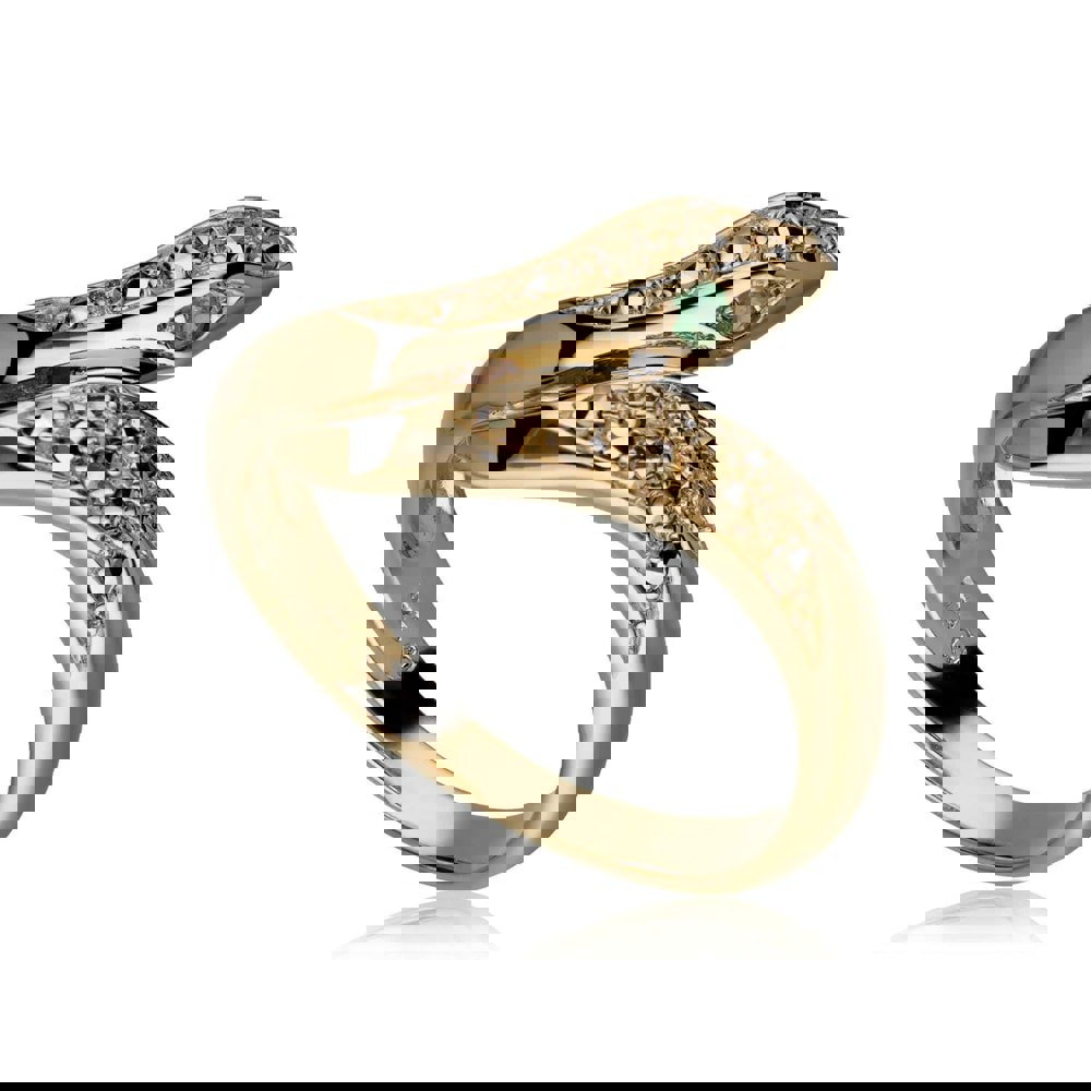 A beautiful 18ct yellow gold plated 925 sterling silver snake ring decorated with emerald eyes and marcasite details in an elegant wrap design. Snakes are symbolic of renewal, making this ring perfect for those celebrating a new start. This ring has a width of 2.5mm.