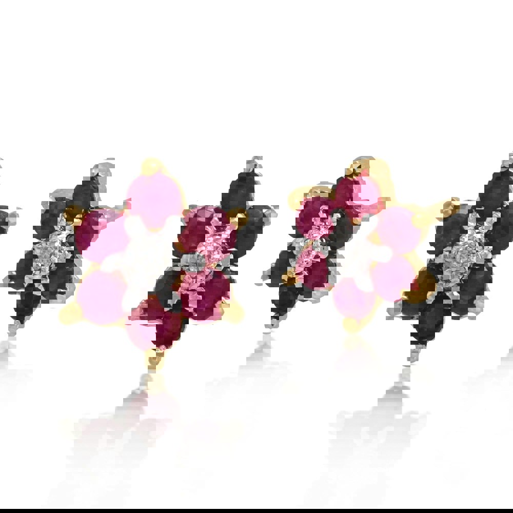These playful flower studs from the Gemondo Floral collection feature 6 ruby petals surrounding a sparkling diamond.