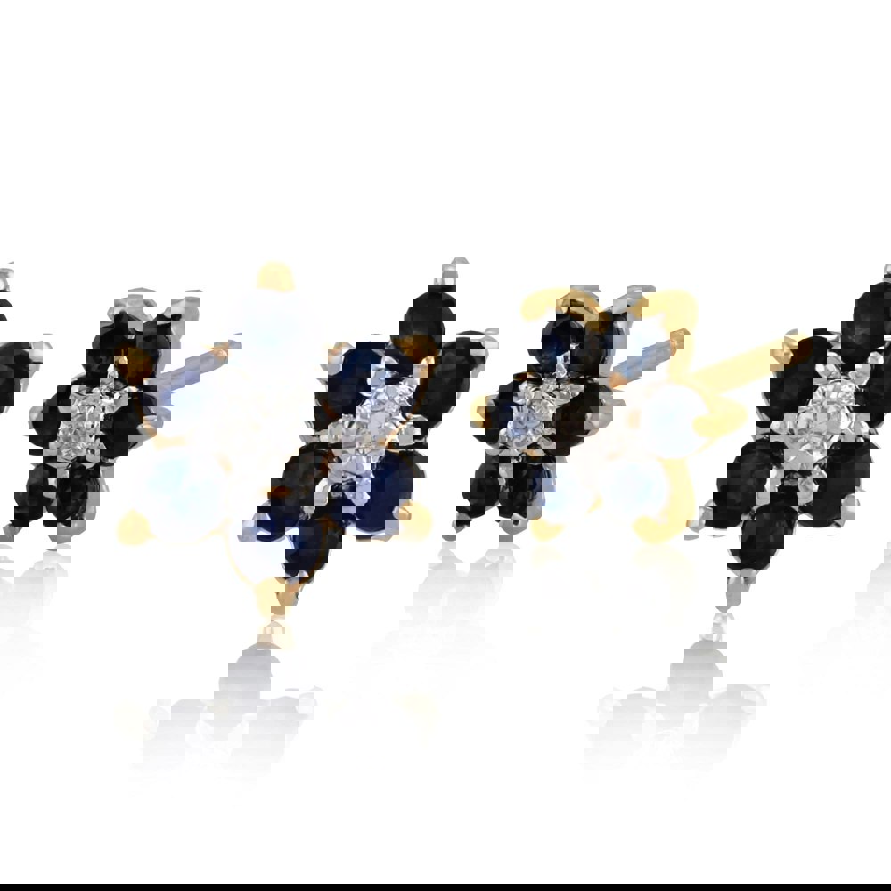 Product Code 10189 Dimensions Width - 7mmHeight - 7mm Material 375 9ct Yellow Gold Gemstone Details 12 x Sapphire - 0. 43ct - Round Cut - 1. 8mm 2 x Diamond - 0. 01ct - Round Cut -1mm