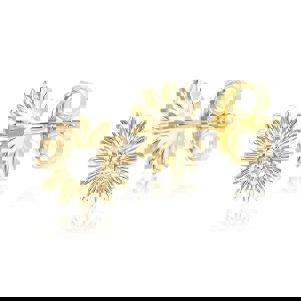 Evoking delicate elegance, these gardenia daisy stud earrings feature round white sapphire gemstones set in 9ct yellow gold to create a timeless and refined fine jewellery design. The floral-inspired silhouette highlights the natural beauty and brilliance of each gemstone while maintaining a classic, graceful aesthetic. Crafted in solid 9ct yellow gold.
