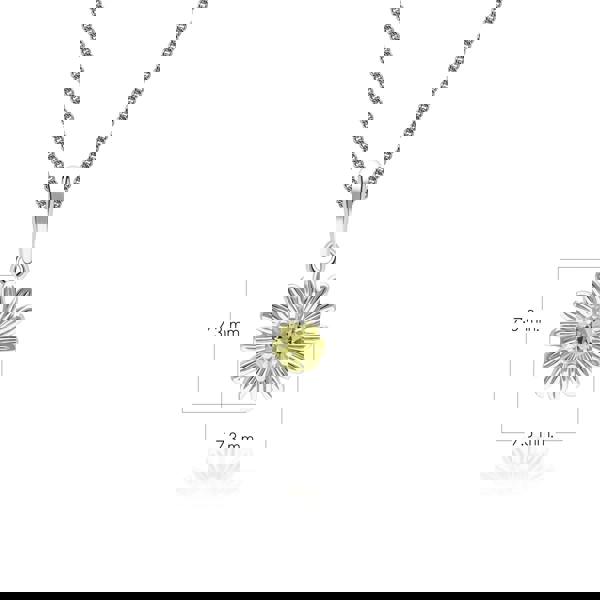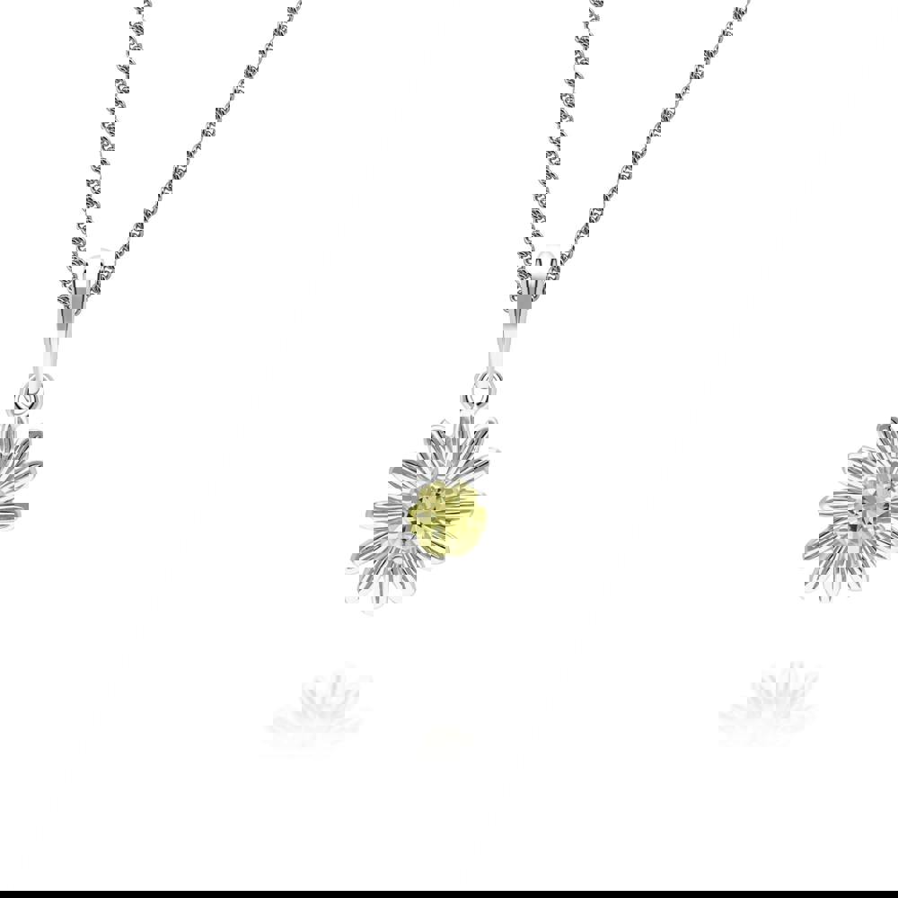 Reflecting delicate floral charm, this gardenia daisy pendant necklace features a round yellow sapphire set in 9ct white gold to create a bright and elegant fine jewellery design. The flower-inspired silhouette highlights the natural beauty and vibrant colour of the gemstone while maintaining a refined, timeless aesthetic. Crafted in solid 9ct white gold.