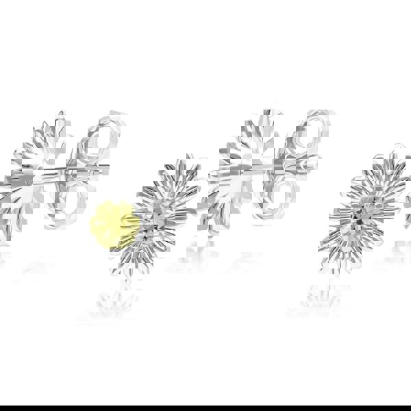 Capturing floral beauty, these gardenia daisy stud earrings feature round yellow sapphire gemstones set in 9ct white gold to create a bright and elegant fine jewellery design. The flower-inspired silhouette highlights the natural beauty and colour of each gemstone while maintaining a refined, timeless aesthetic. Crafted in solid 9ct white gold.