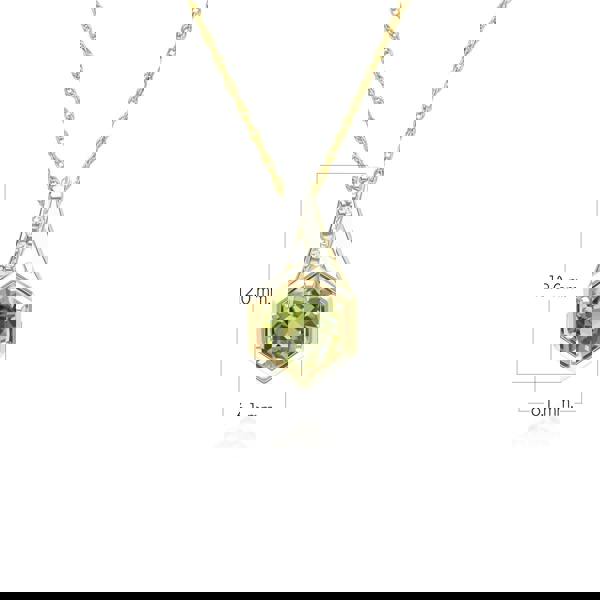 In a geometric silhouette, this round peridot and diamond pendant necklace features a vibrant peridot gemstone accented with diamonds set in 9ct yellow gold to create a refined fine jewellery design. The circular form highlights the fresh green colour and brilliance of the stones while maintaining a modern, elegant aesthetic. Crafted in 9ct yellow gold.