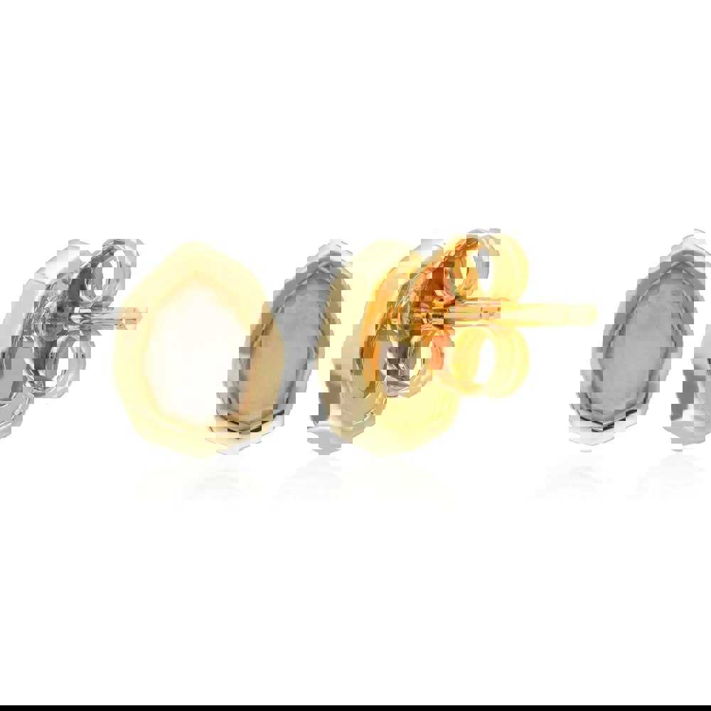 A pair of beautifully boho 18ct yellow gold plated sterling silver stud earrings with central irregular pear facet rainbow moonstone gemstones and a post and butterfly backing. Curate your ears with these bold and contemporary gemstone earrings.