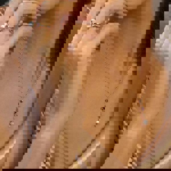 A chic rose gold plated open ring with a focal round cultured freshwater pearl and a garnet gemstone. Mix and stack this playful ring with your jewellery favourites from Gemondo's Modern Pearl Collection.