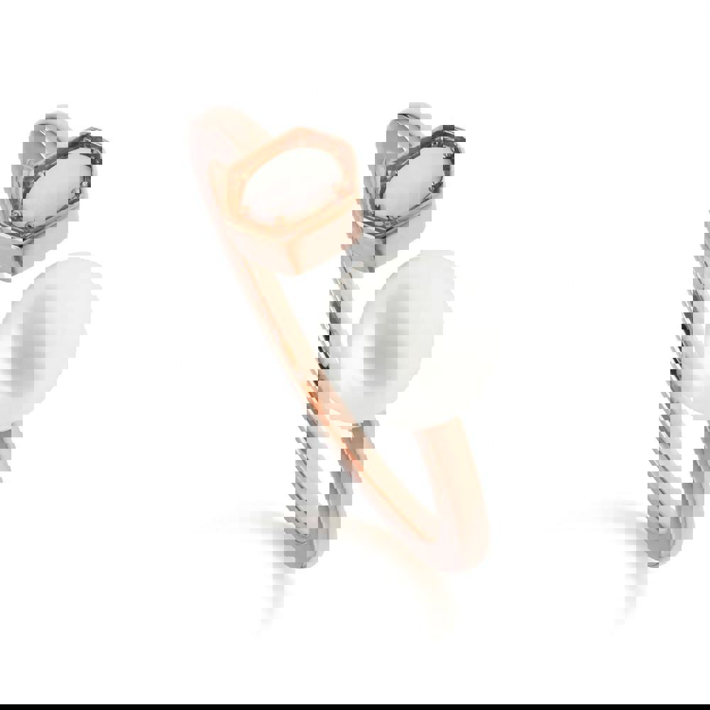 A playful and contemporary rose gold plated open ring with a focal round cultured freshwater pearl and an opal gem.