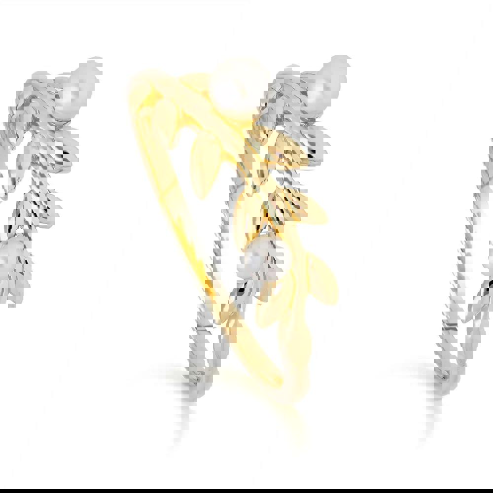 An elegant gold plated sterling silver ring with classic pearls in a harmonious olive branch motif. Layer and stack with beautiful matching items from Gemondo's O Leaf Collection.